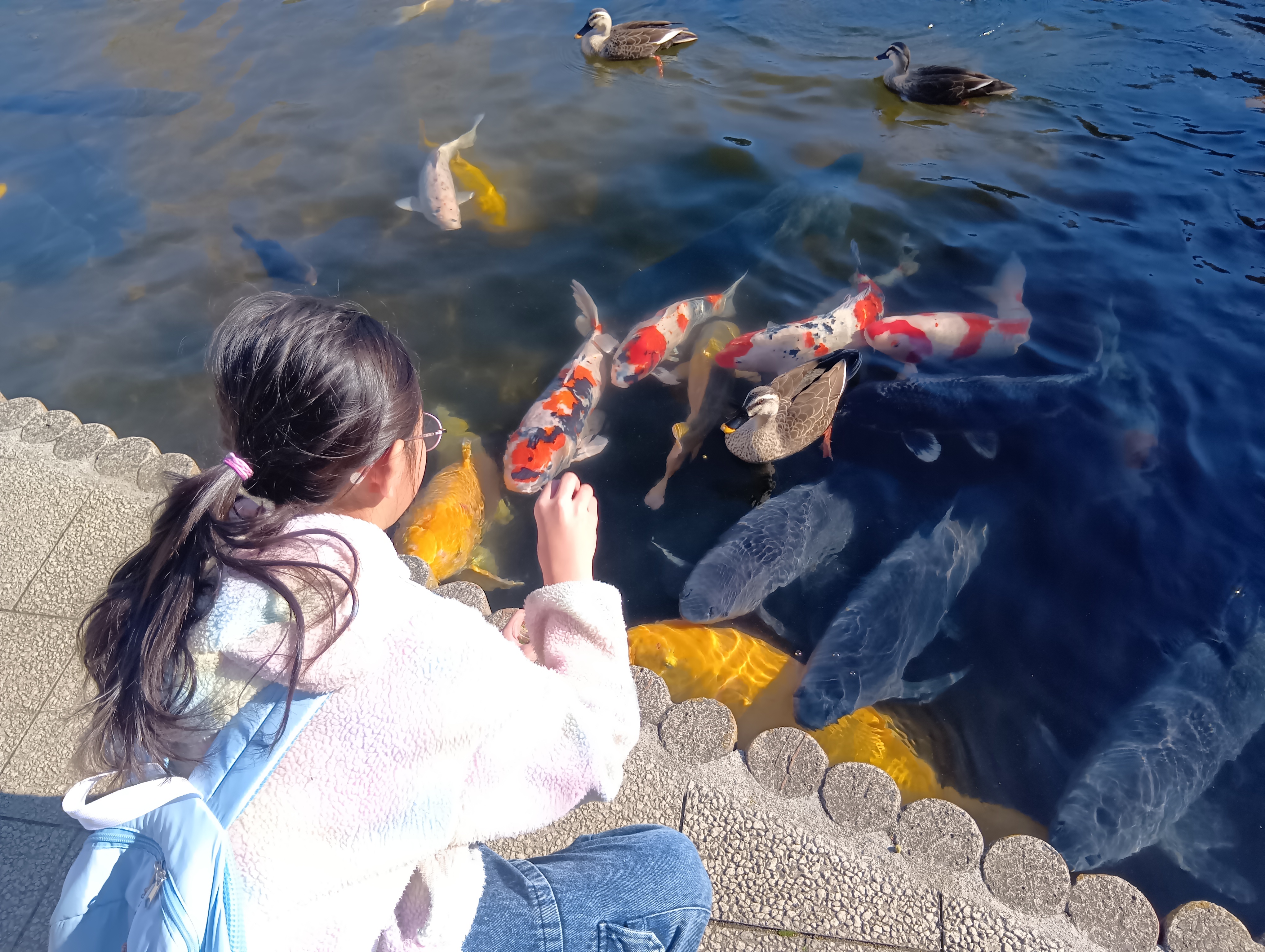 園内の池では、鯉のエサやりを楽しめました(⌒∇⌒)