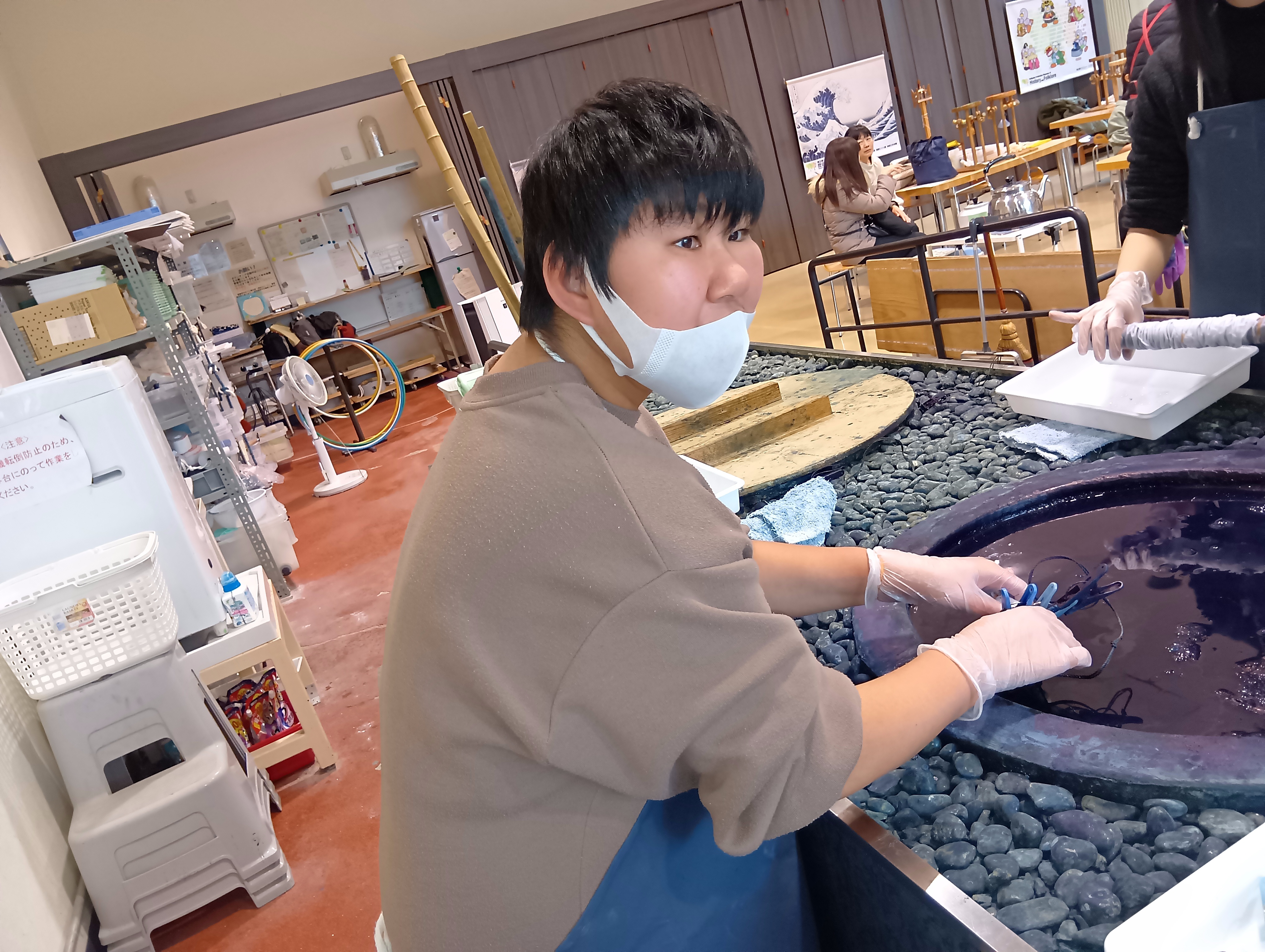 HOME > 2026年2月 > 2026年2月 活動報告藍染めハンカチ作り! 2026年2月11日 本日は、埼玉県立歴史と民俗の博物館へ行き、体験学習として藍染めハンカチ作りを行いました!藍染めの歴史や昔の人々の暮らしとの関わりについて、分かりやすい説明を聞きました。藍は衣服を染めるだけでなく、防虫や殺菌の役割もあり、生活に欠かせない存在だと知りました。藍染めの体験を通して、学びと楽しさの両方詰まった時間でした(⌒∇⌒) Twitter Share Pocket Hatena LINE